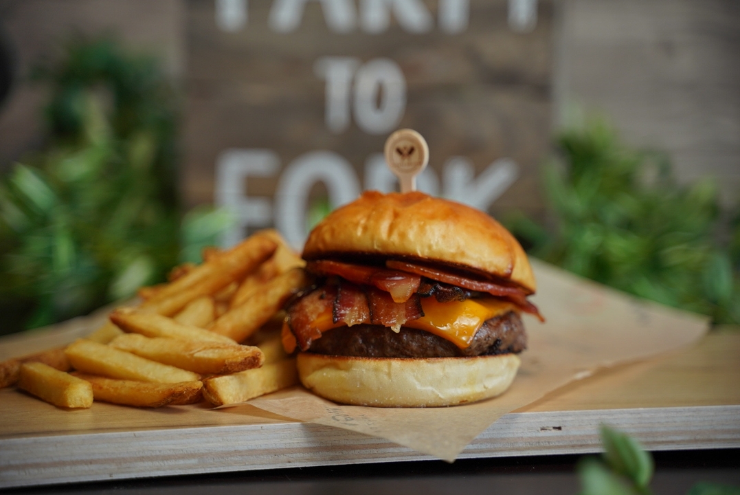 Thick cut cherry wood smoked bacon, house made BBQ and cheddar cheese.